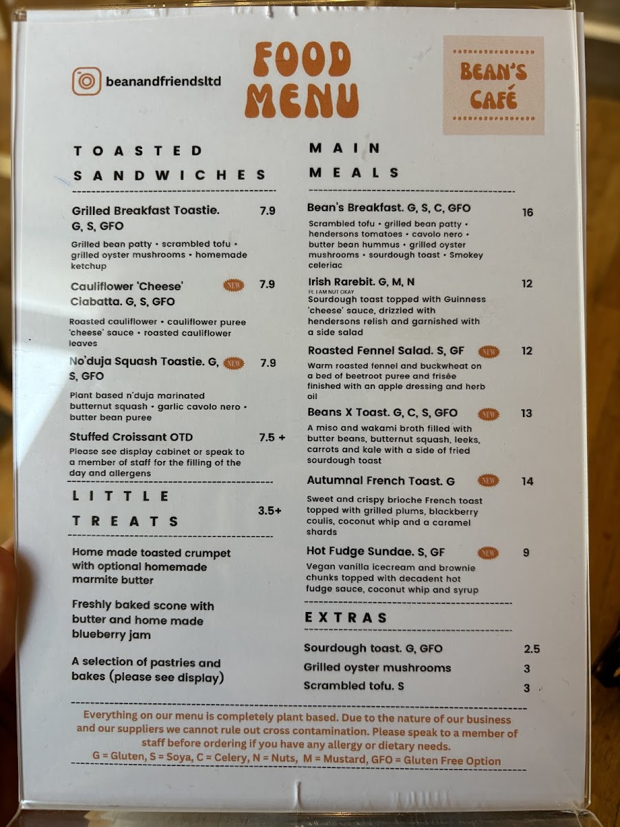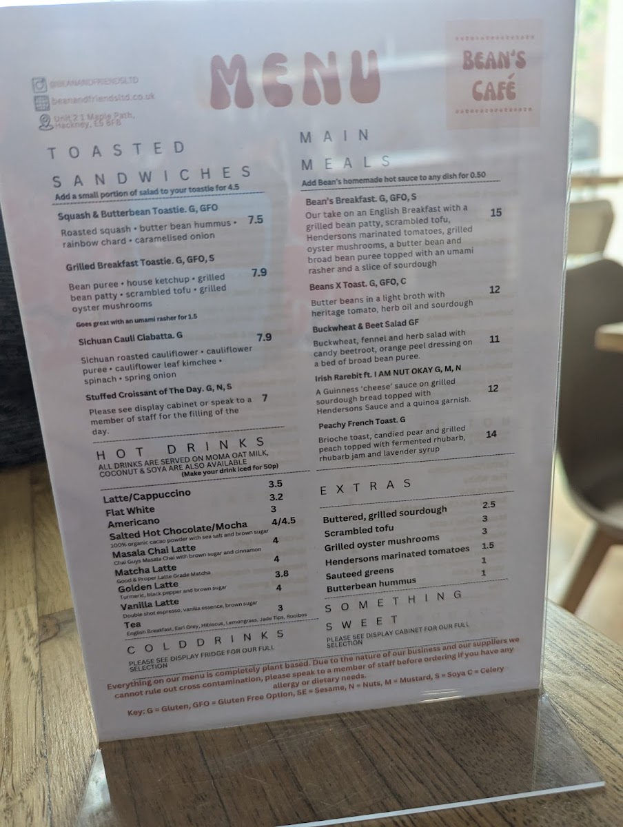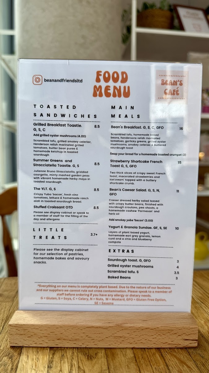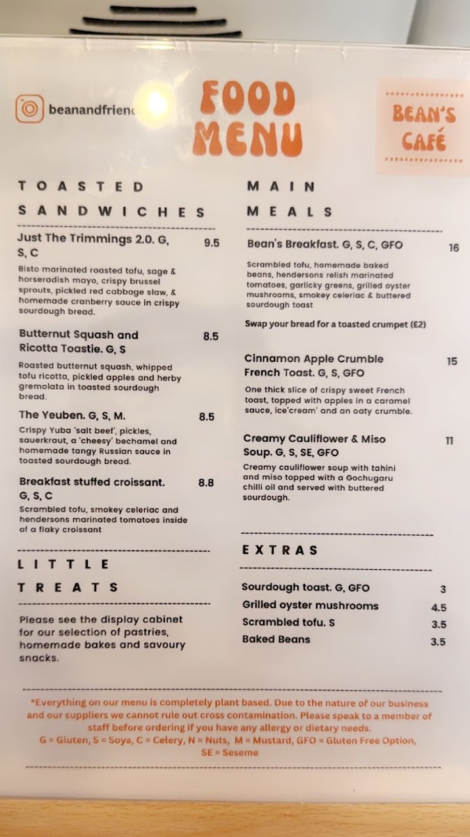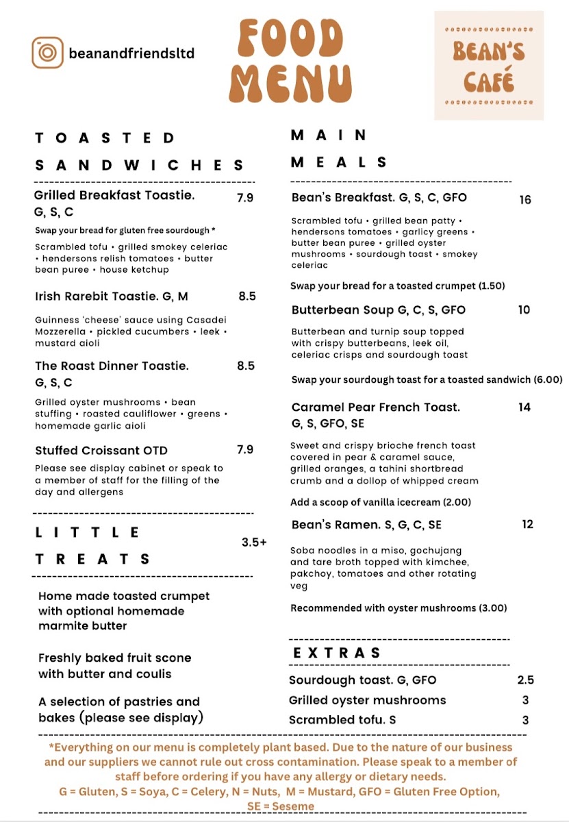 Bean’s Cafe Menu
